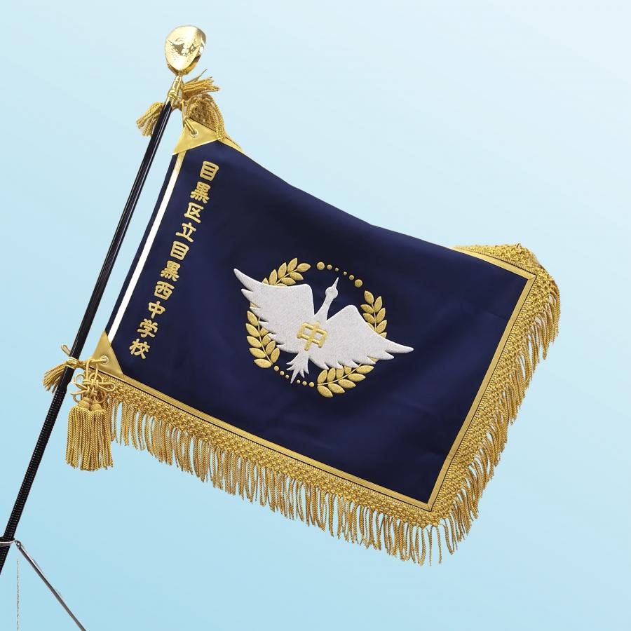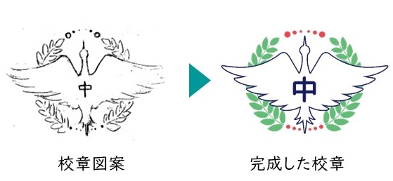 第八中学校と第十一中学校のモチーフである白鷺と月桂樹を組み合わせ、両校のスクールカラーである赤色と第十一中学校のスクールカラーである黄緑色を用いたデザインである。
