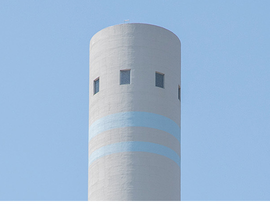 Q 煙突から煙が出ていないよ!なんで?煙突から出ているのは、きれいになった排ガスだけ。ろ過式集じん器(注釈)や薬品を使って徹底的に処理して排出しています。排ガスは測定し、法令より厳しい自己規制値以下であることを確認しています。 (注釈)排ガスの汚染物質を除去する装置 |