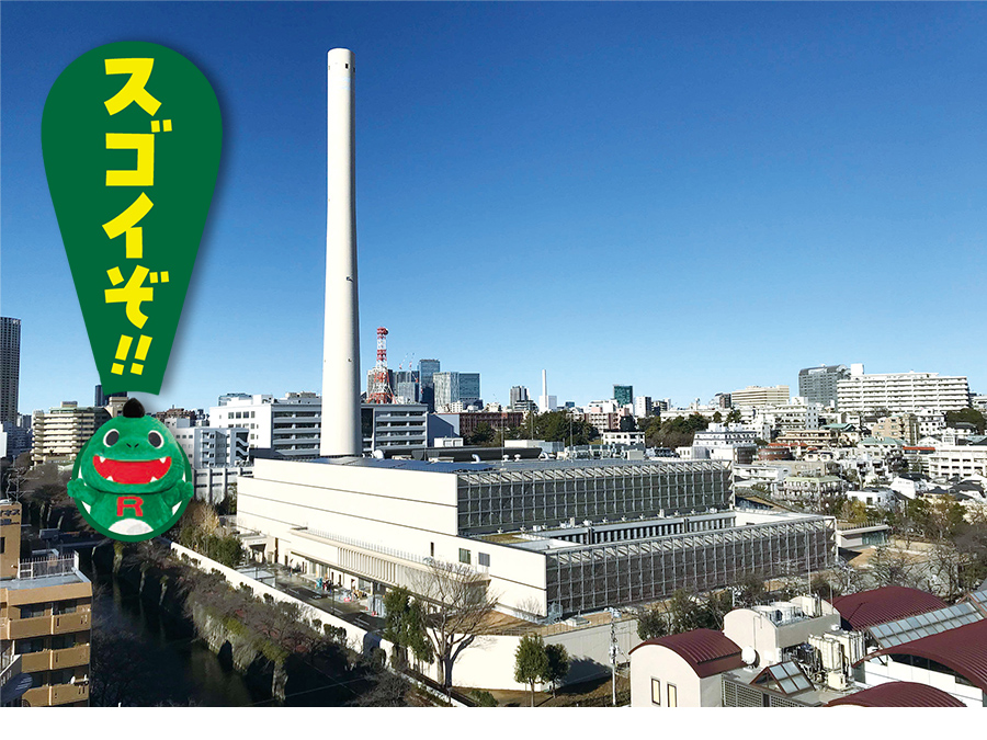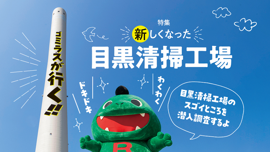 区内でもひときわ高くそびえ立つ煙突が目印の、目黒清掃工場。約6年前から始まった建て替え工事が、今年3月に完了。壁面・屋上の緑化、建物のデザインや高さで圧迫感を軽減するなど、周辺環境に配慮し、生まれ変わりました。最新技術を導入した目黒清掃工場を、区のごみ減量キャラクター、ゴミラスが潜入調査します。