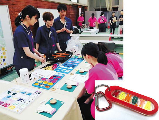 手作り衣類や小物などの販売のほか、キーホルダーや木箸製作体験、輪投げ大会、シュートチャレンジ(バスケットボール)など、多種多様な区内企業・団体が出展します。焼き鳥やクレープ、皿うどんなどが楽しめる飲食コーナーもあります。