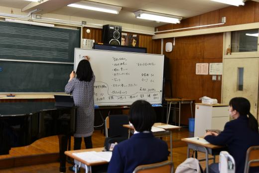 ワークショップも3回目ということで、考える作業に慣れた様子の生徒たちは、10分程度でそれぞれの歌詞を完成させ、お互い発表することになりました。少し恥ずかしがりながらも、“自分で作った歌詞“を発表する姿が、どこか誇らしげでとても生き生きしているように見えました。