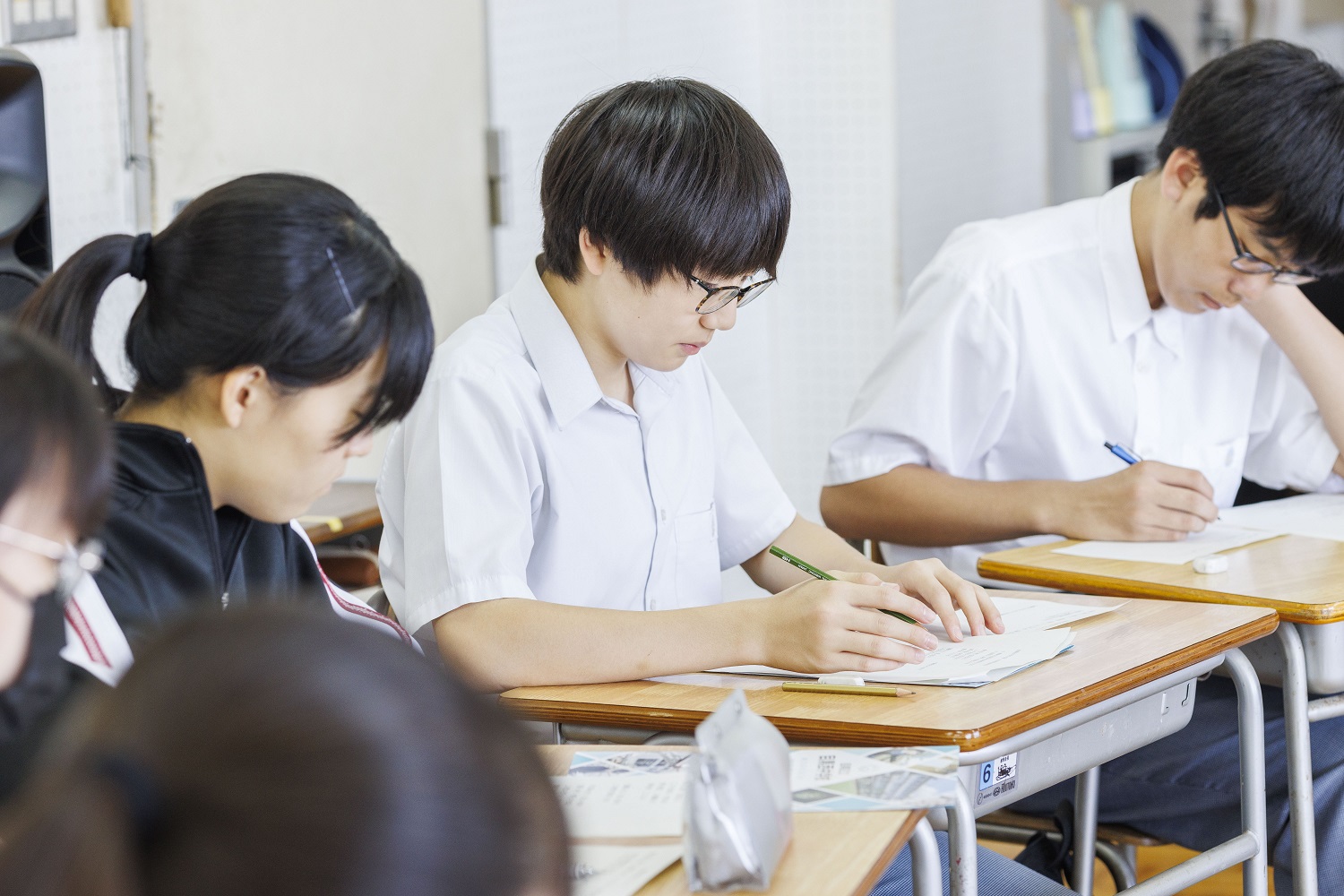 植村さんの校歌制作への思いを聞いた後、改めてみんなでデモ音源を聞き、生徒ひとりひとりに感想を聞きます。これから自分たちが歌い継いでいく生徒たちの生の声を真摯に受け止める植村さん。