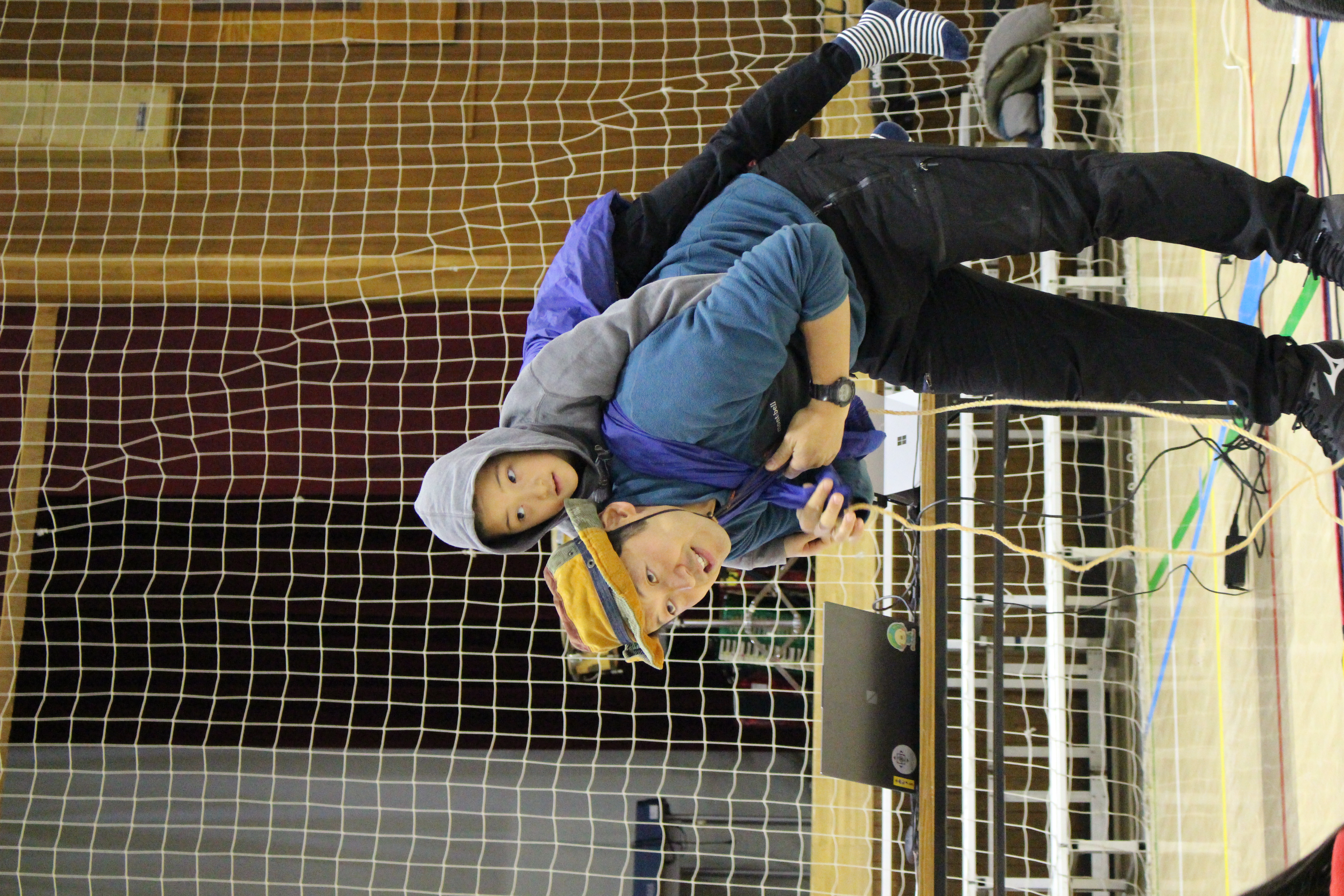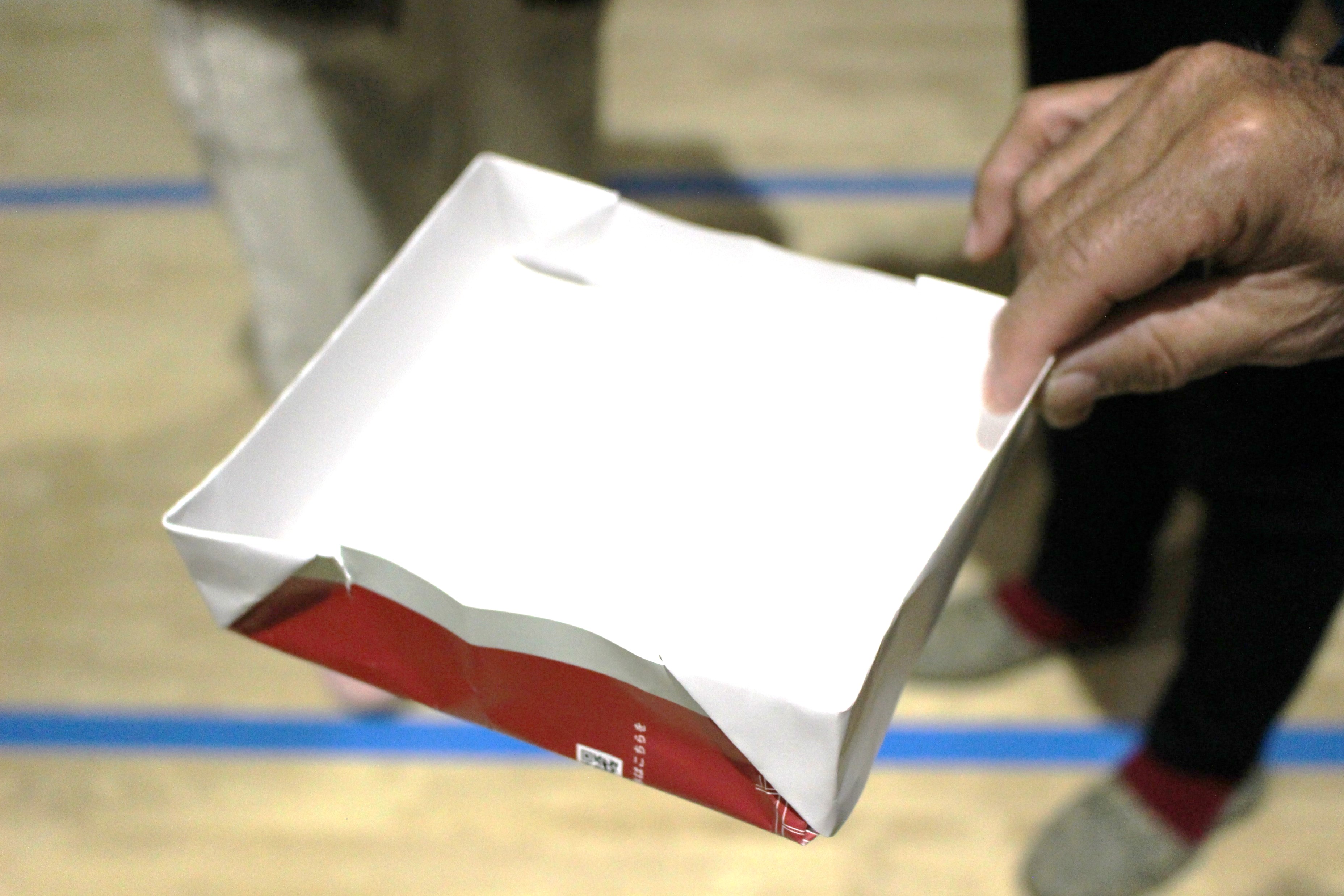今回、会場が体育館ということもあり、避難所で使用される「屋内用テント」と「段ボールベッド」の組み立て体験が行われました。