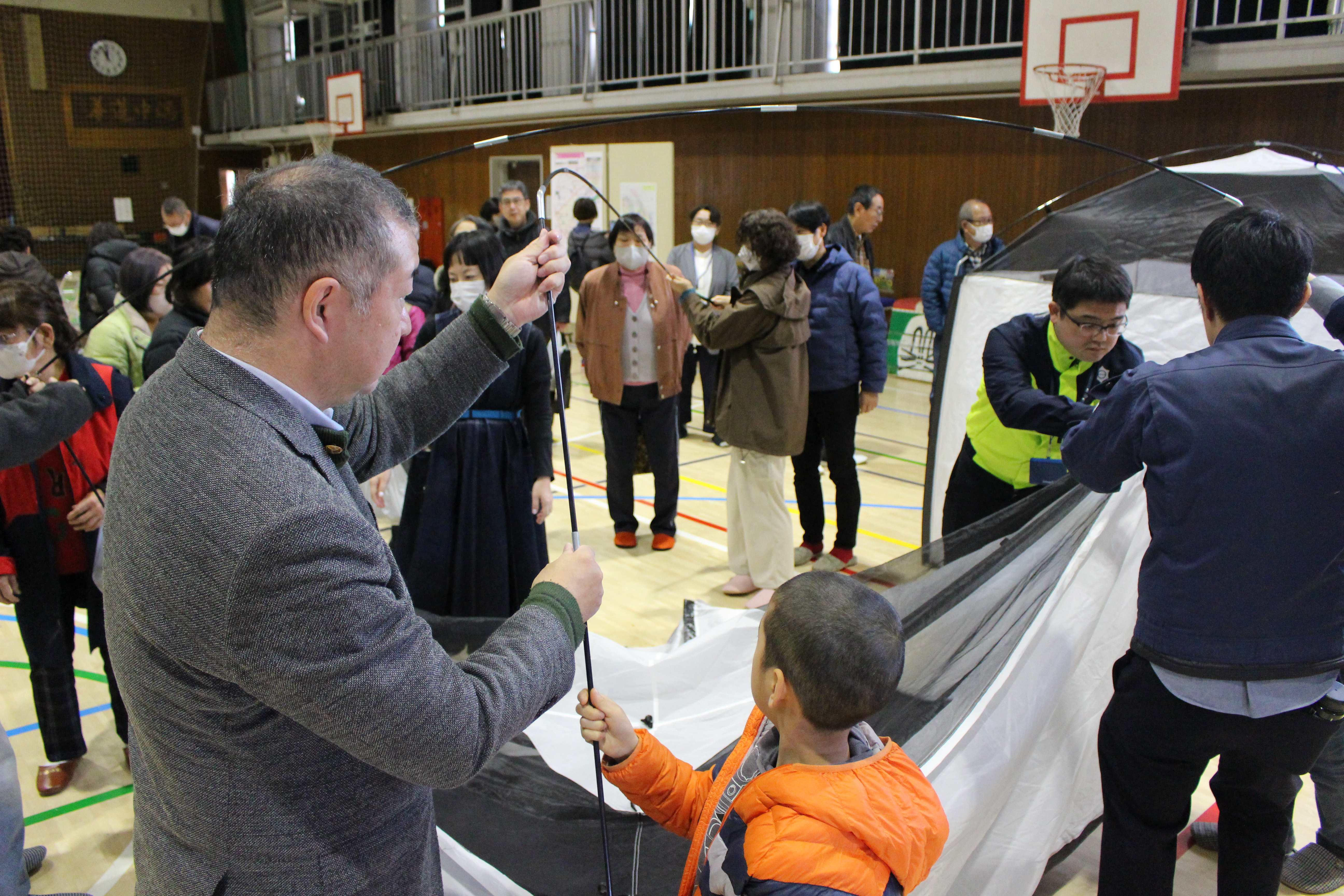 組み立て作業そのものはさほど難しいことではないですが、支柱を持つ人、シートを被せる人、それぞれが協力しないとテント1つ組み立てることができません。「自分にもできることがあるかもしれない」という気持ちが、避難所を機能させ、地域全体の安心につながっていくのだということを実感しました。