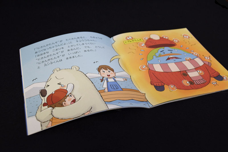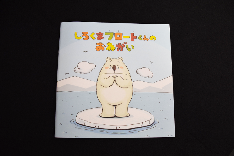 この絵本は、目黒日本大学学園(当時、日出学園)の生徒会が同校の文化祭「すずかけ祭」の収益金の一部を「温暖化対策啓発紙を発行してほしい」と学校を通じて目黒区に寄付し、子ども向けの啓発誌が少ないことに着目した区がストーリーを考案して作成したもの。絵本の内容は、登場人物の「カンタくん」と「キョウコちゃん」が、夢の中で助けたしろくま「フロートくん」と一緒に、温暖化の原因といわれている二酸化炭素を減らす方法を考えるというお話。絵本は区内の保育園・幼稚園・小学校、児童館などに配布され、区内の多くの子どもたちに分かりやすく地球温暖化について説明をしています。