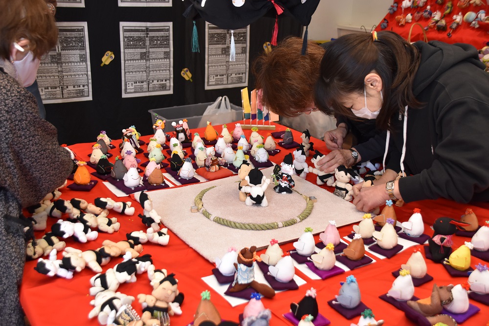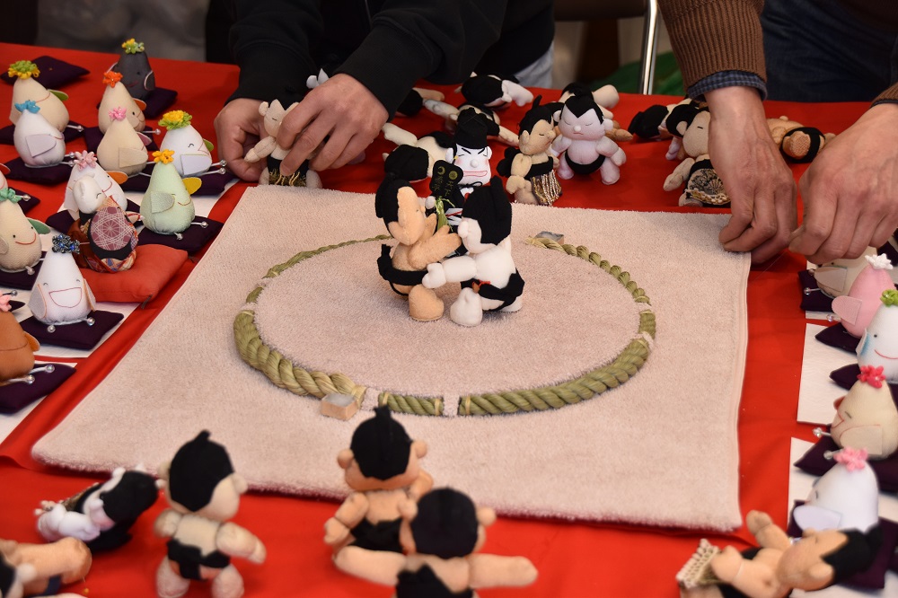 メインの大相撲や、つるし飾りだけでなく置いて飾る作品も会場を盛り上げていました。