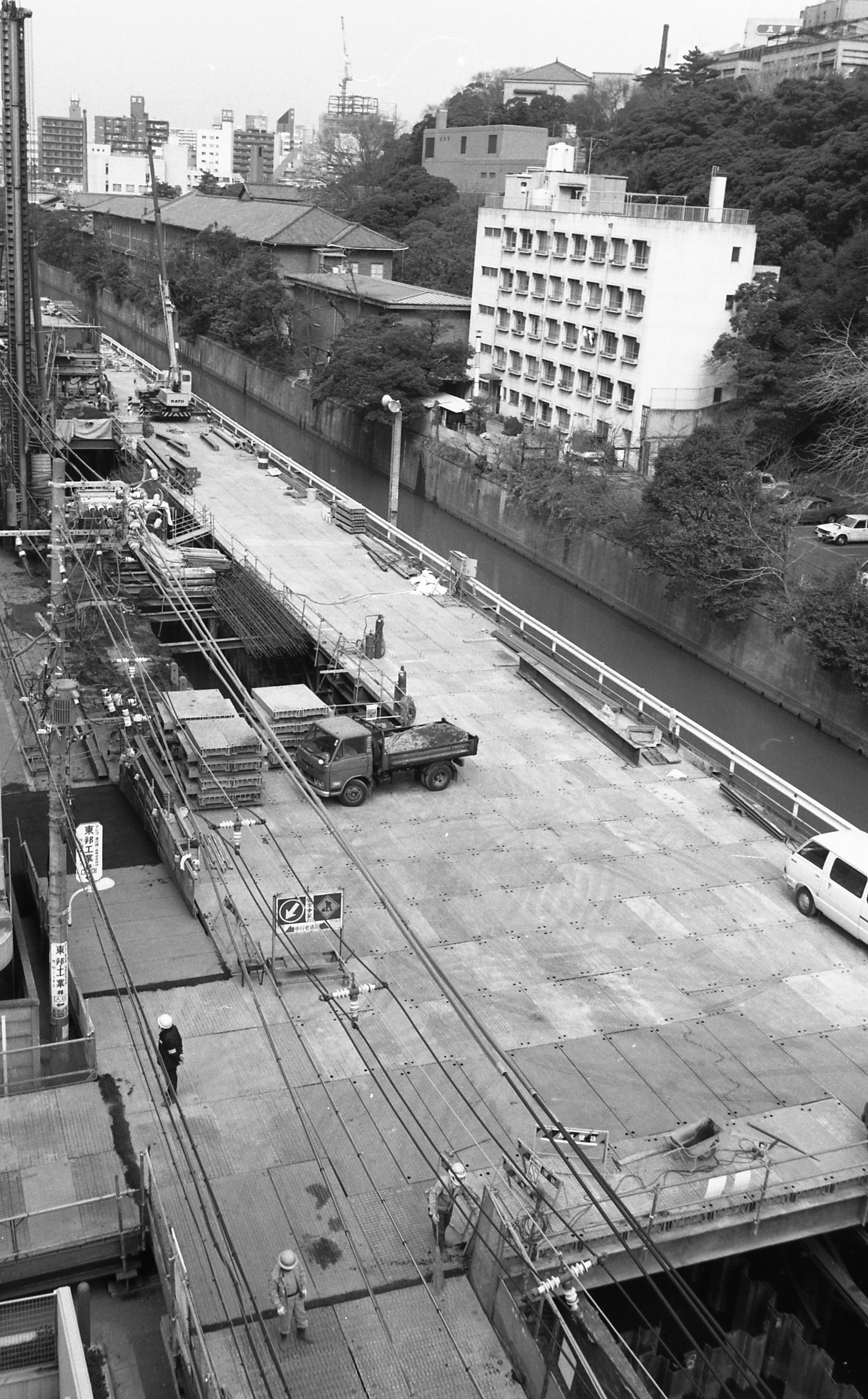 しかし、この改修箇所より下流の整備は、市街地の密集化が進んだことで時間がかかっていました。そこで、東京都は、少しでも早く治水対策を進めるため、昭和60年度から平成2年度にかけて、増水した川の水を一時的に貯める施設「船入場調節池(ふないりばちょうせつち)」を造りました。その場所は、今や、キッチンカーでにぎわう、あの中目黒の「フナイリバ」の下にあります。