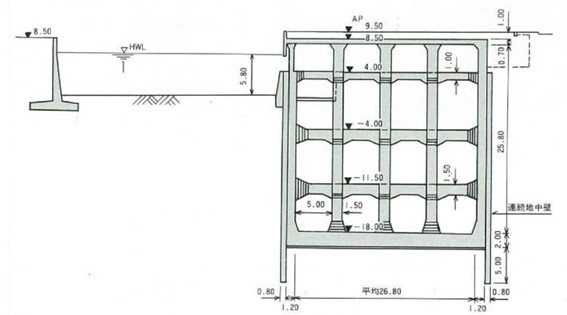 平成3年に利用が始まった「船入場調節池」は、都内で最初に造られた「地下箱式調節池」で、東京都が管理をしています。