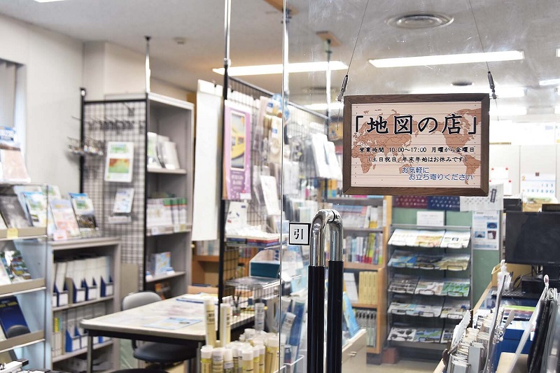 店内には、珍しい地図や、使われなくなった地図を再利用したグッズが販売されていた。