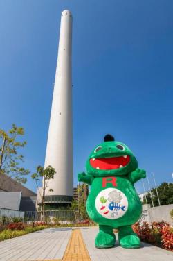 10月1日号は、今年3月に完成した出来立てホヤホヤの目黒清掃工場の特集です。レポーターに抜擢したのは、区のキャラクターの中でもイチ押しの「ゴミラス」。このゴミラス、保育園などの環境学習で、子どもたちにごみに関する啓発活動をしているんですが、過酷な夏の時期(7月中旬から9月中旬)はお休みなんです。しかし、この特集の撮影をしたのは、朝から雲一つない35度越え予報が出ていた7月下旬の日。それでもゴミラスは、嫌な顔一つ見せることなく、いつもの素敵な笑顔で潜入調査に協力してくれました。