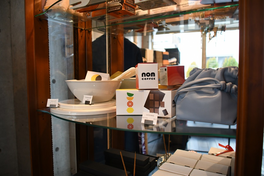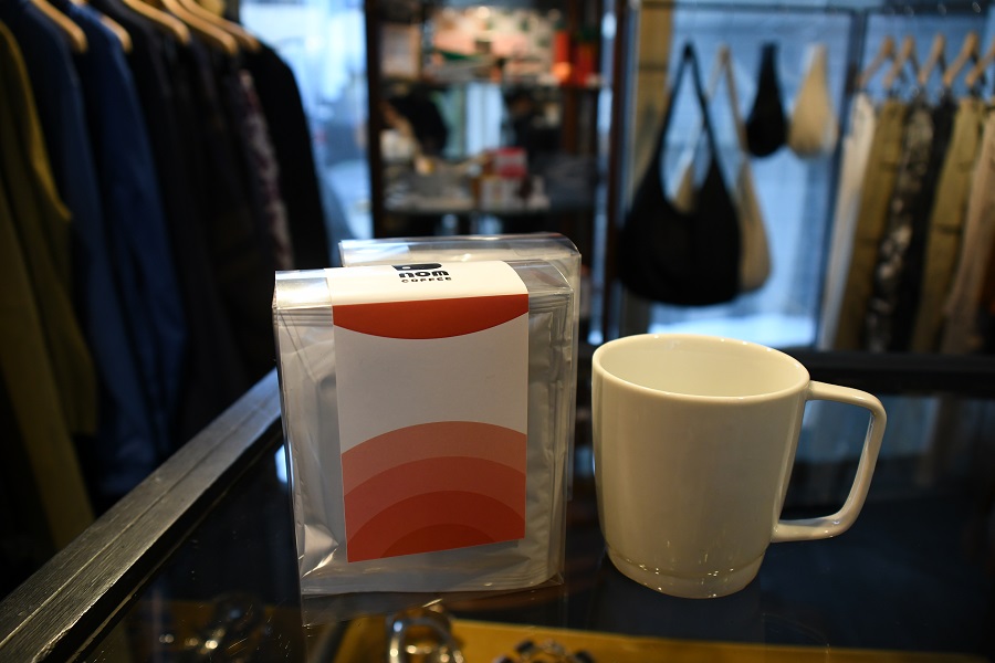 第二弾としてご紹介するお店は、「NOM COFFEE」さんです。実店舗はなく、基本はオンラインでの販売ですが、祐天寺駅から徒歩8分の場所にあるアパレルショップ「studiolab404.com」さんでも購入することができます。プレゼントの引き換えは引換券を「studiolab404.com」の店舗に持参してください。祐天寺からほど近くの住宅街に突然現れる武骨でかっこいい建物。店主のセンスが光るアイテムが並び、とてもおしゃれなお店です。