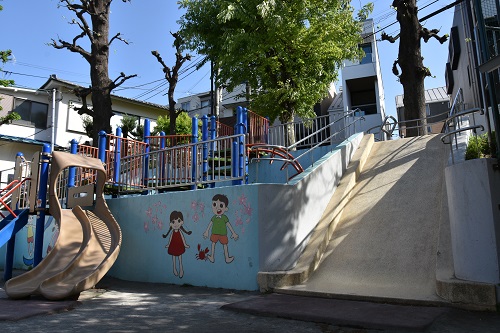 地の利を生かしたユニークな滑り台がある大塚山公園(目黒区目黒四丁目5番28号)