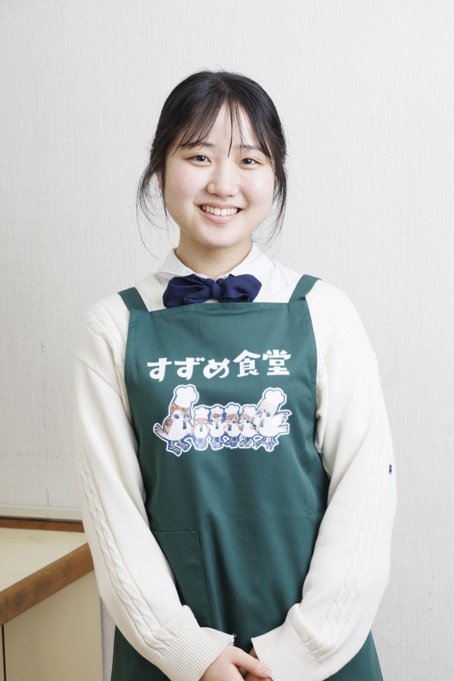 着用するエプロンには、すずめ食堂のキャラクターが描かれています。