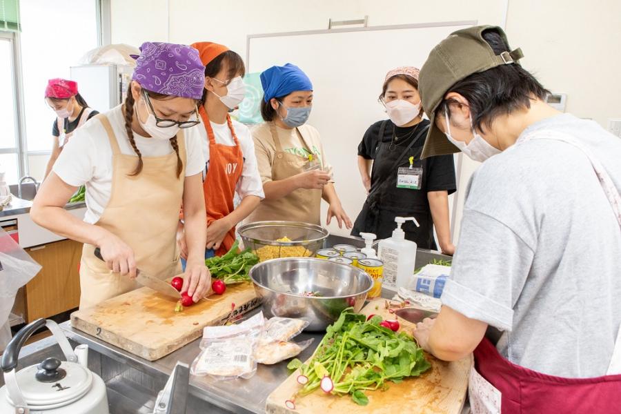 こどもば食堂では、取材で訪れてみると7名ほどの学生ボランティアが活動に参加されていました。お話を伺うと、「小さい頃、この食堂によく来ていたから、自分も何かお手伝いしたいと思い、参加しています」「お料理するのが好きで、子どもも大好きなので、楽しくて参加しています」など、参加した理由はさまざま。学生ボランティアの皆さんと子どもたちは本当に楽しそうに会話をしていて、さらに学生ボランティア同士でも、新しい友だちを作ったりと、交流が広がっている様子が見受けられました。