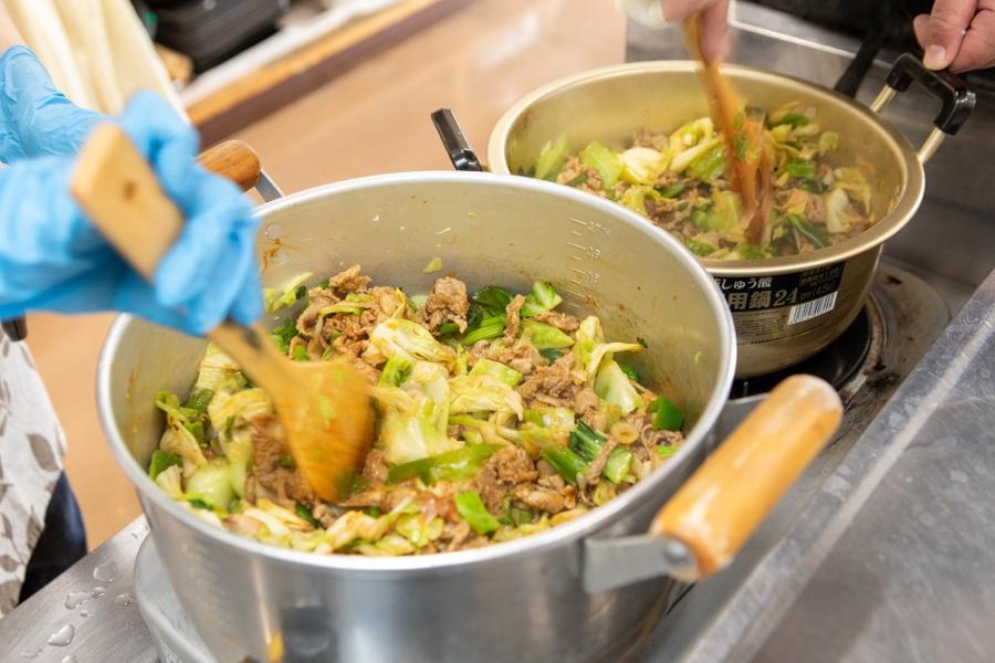取材に伺った日は、ボランティアさんが20人ほどいらっしゃいました。思っていたよりも多くのかたが参加されていることに驚きましたが、初参加のかたもいらっしゃり、皆さんでコミュニケーションをうまくとりながら手際よく調理をされていて、調理の時間も笑顔の絶えない雰囲気が印象的でした。
