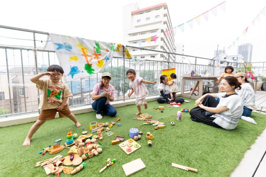 おやこカフェは、屋上の広い芝生が、子どもたちに大人気。ここでは、子どもたちが制作したアクセサリーなどの販売を行い、売り上げは次の制作物の材料費になったり、子ども食堂の活動費の一部となったりと、それぞれの子が、自分のやりたいことをやれる、そんな雰囲気を大事にされていました。