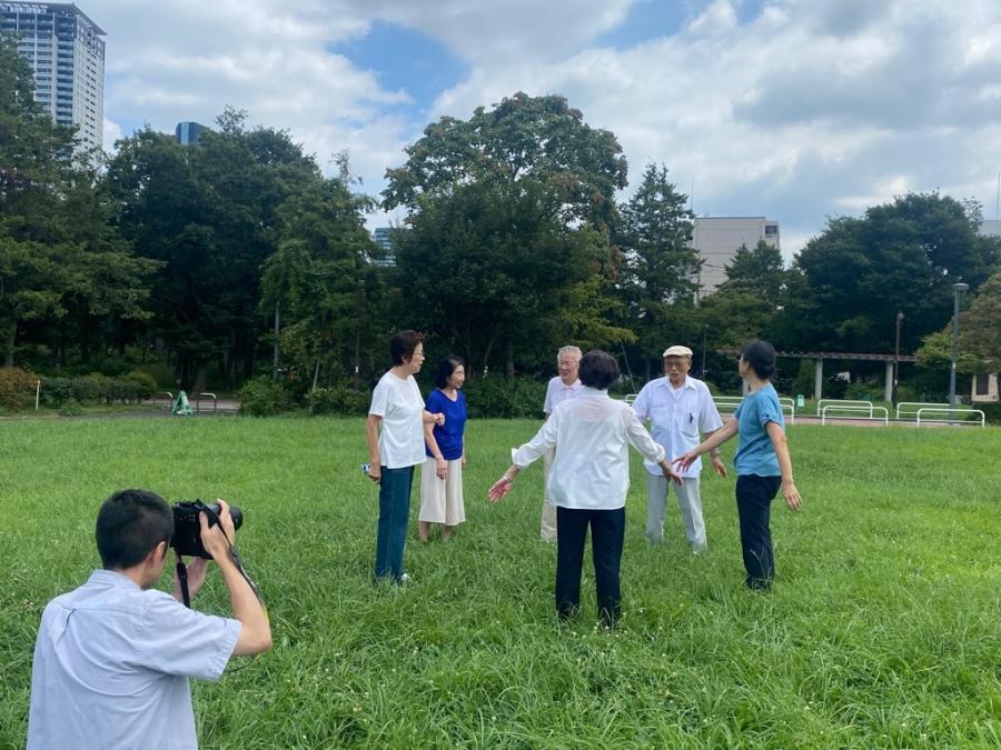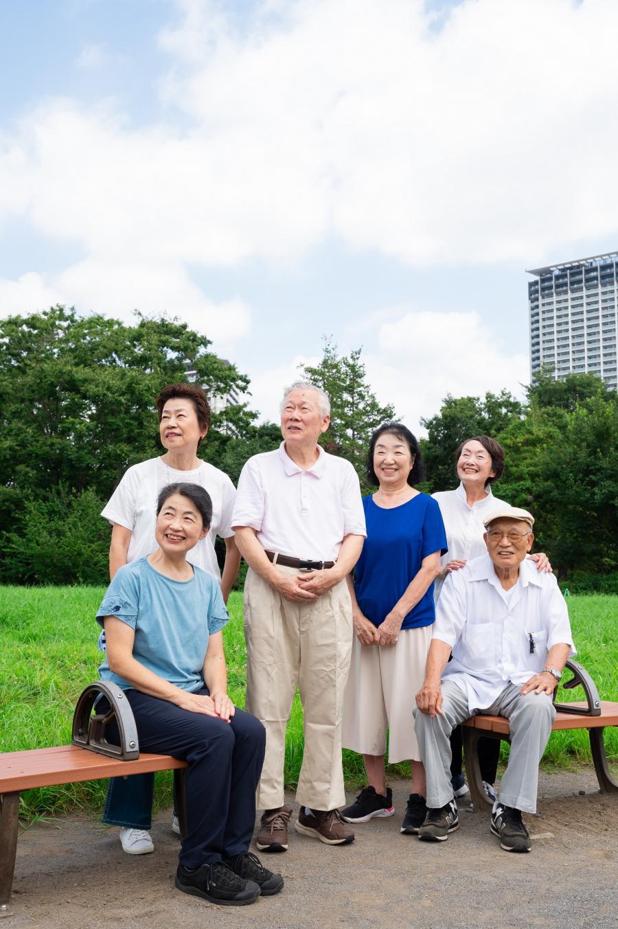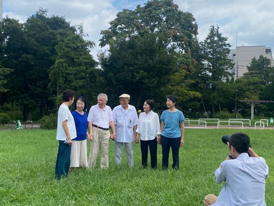 さくらウォーキングの皆さんには、表紙の撮影のご協力もお願いしました。公園に集合していただき、複数の構図を撮影しました。実は、表紙に使われた写真は私たちから提案したポーズではなく、皆さんから提案いただき撮影されたものです。いつものストレッチを輪になってやってみたところ、皆さんの笑みが増えていき、最後にはとても自然な笑顔があふれ出たので、その写真が採用されました。
