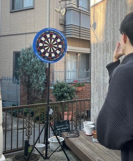 ダーツチャレンジの存在を事前に知っていた筆者は、お店に向かう道中でイメージトレーニングを行い、準備万端で挑みました。特別に練習も数投させていただき、いざ本番!