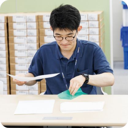 話をきちんと聞くことと、深呼吸をして落ち着き、手元を見て集中することを心掛けて仕事をしています。発送物の封入・発送が楽しい仕事です。新しい仕事に取り組むときはドキドキします。