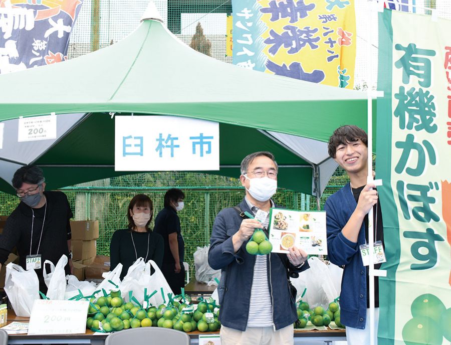 昨年10月8日に開催された区民まつりのふるさと物産展でも、臼杵市産の有機カボスが大人気でした。
