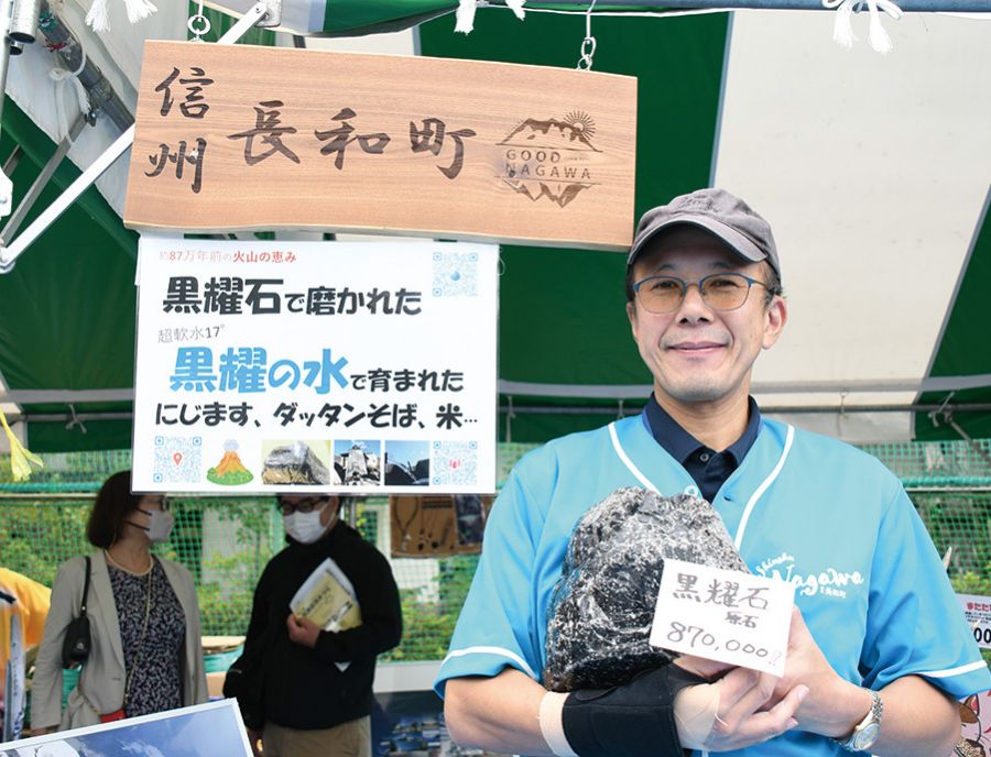 長野県の中央に位置する長和町は、日本遺産に登録され世界的にも有名な縄文時代の黒耀石(こくようせき)鉱山があります。黒耀石の岩盤でろ過された黒耀水は、太古の昔から絶えることなく湧き出ている天然水で、黒耀水を使った手打ちダッタンそばや清流で育ったニジマスの唐揚げは絶品です。また、美ヶ原高原の美しの塔や不動滝など雄大な自然を感じられるまちです。