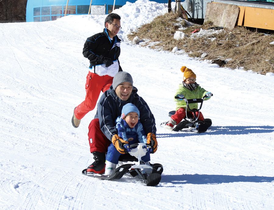 国内でも数少ないスキーヤー専用のスキー場。晴天率80パーセント、標高1,800mの白銀の世界で、晴れた日には山頂から日本アルプスや八ヶ岳連峰、富士山が望めます。ゲレンデは、全9コース。託児所やキッズスペースもあります。