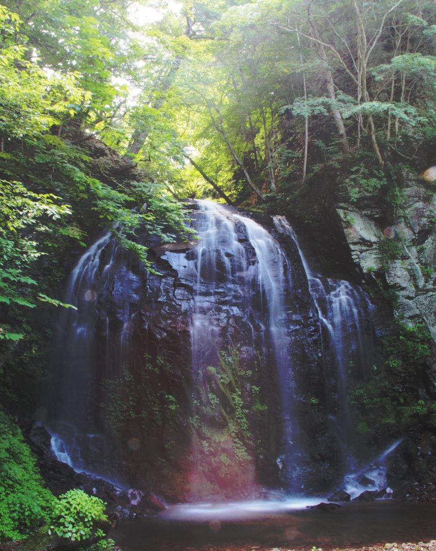 大茂沢川の支流で落差16mの不動滝は、古くから修行の場であったことから、滝の脇には不動尊が祀られています。滝の前の広場では、さまざまな角度から見ることができます。