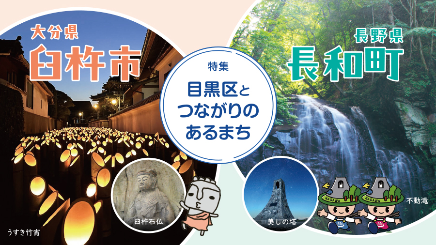今号は、大分県臼杵市と長野県長和町との共同企画。災害時相互援助協定を締結し、区民まつりなどで交流を深めている両都市と、広報紙で互いの魅力を紹介し合います。目黒区が紹介される「広報臼杵」12月号、「広報ながわ」1月号は、両都市ウェブサイトでご覧になれます。また、両都市の魅力の詰まった読者プレゼントもあります。ぜひご応募ください。