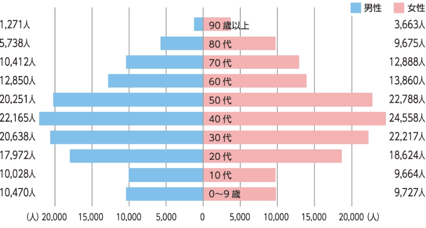 279,459人 男性:131,795人 (令和6年3月1日現在)
