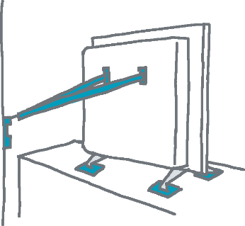 テレビが転倒しないように耐震マットを敷き、さらに壁などにひもで固定しています。 |