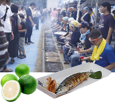 メインイベントは目黒のさんま祭。友好都市の宮城県気仙沼市から届いた新鮮なさんまを炭火焼きにして提供します(事前申込制で、申し込みは終了(下記参照))。大分県産のカボスを添えるとおいしさ倍増です。気仙沼からは気仙沼市観光キャラクター「海の子ホヤぼーや」が、大分県からは大分かぼすマスコットキャラクター「カボたん」が来場して会場を盛り上げます。