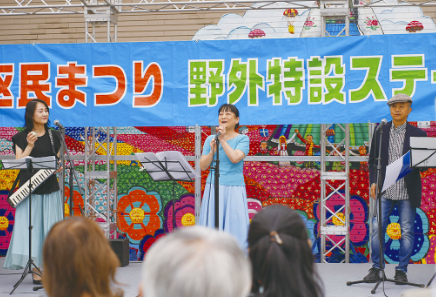 さまざまなジャンルの模擬店が楽しめます。ホールと野外ステージでは、区内で活動する約30団体による楽器演奏やフラダンス、バレエなどのほか、新作落語の観覧などを楽しめます。