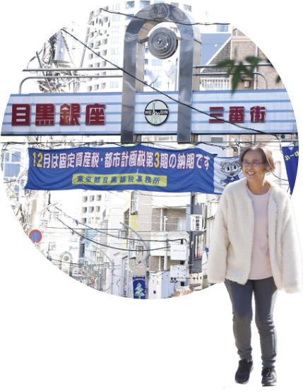 目黒駅から西側に行くと江戸時代の面影を残す権之助坂があって、懐かしさあふれる権之助坂商店街はレトロなたたずまいの建物が並び、通るだけでも楽しめるスポットです。坂を下りていくと、インテリアストリートにつながり、とても雰囲気が良い場所です。ぜひ足を延ばしてほしいです。