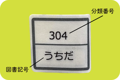 バーコードのラベルを本の外側と内側(見返し紙)に一枚ずつ貼ります。本の場所(住所)を表す分類番号などを印刷したラベル(下記参照)を背表紙に貼り、資料を保護するためにフィルムカバーをかけます。