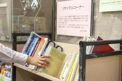 除籍した本のうち状態が良いものはリサイクルシールを貼り、無償で提供しています。