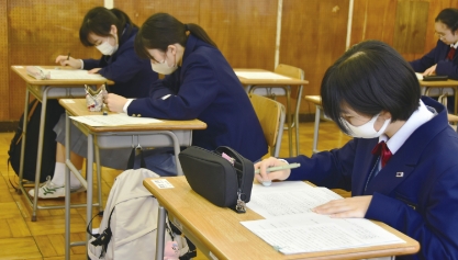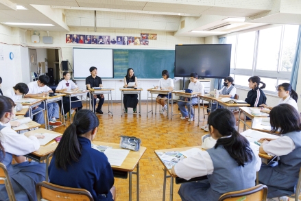 新校のシンボルとなる校歌や校章、スクールカラー、標準服について、生徒たちがアイデアを出し合ったり、実際の検討や制作に参加したりして、新校の開校に向けて準備を進めてきました。