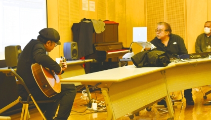 私は、もう二つ返事で引き受けました。ワークショップで生徒たちと一緒につくり上げる中で、曲のクオリティーを保つことができるのは中西圭三さんしかいないと思い、声をかけました。 |