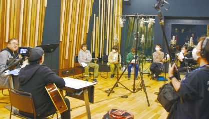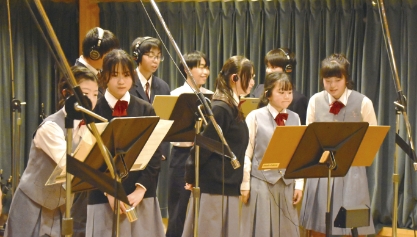 両校の生徒有志が参加して、本格的なスタジオで合唱の音源収録が実施されました。