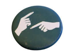 左手の甲を上向きにして、胸の辺りに水平に置く。右手を左手の甲へ垂直に下ろしてから上げる