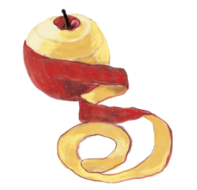 皮をむく際は、かつらむきの要領で一周くるっときれいにむくと、カットする時に重ねて切れるので便利です。