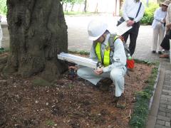 目黒のサクラ保全事業では、樹木医による「樹木診断」を行い、個々の桜の健康状態を確認しています。