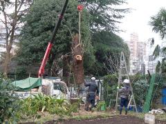 樹木診断により倒木の危険があると判断された桜については、安全確保のために伐採を行っています。伐採した桜は切り株でしばらく置くことで抜根しやすくなるため、すぐに掘り起こさず1年から2年置いてから抜根しています。サクラ再生実行計画に基づいた品種や植栽間隔で桜の植替えを行っています。