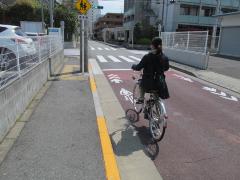 区では、安全で安心して通行できるように、自転車ナビマーク設置等の自転車走行環境整備を行っていきます。