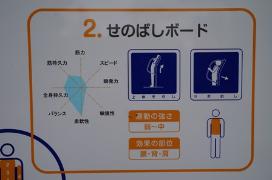 ぶらさがり運動で背筋を伸ばし、背中の大きな筋肉の疲れをとります。身長に合わせて、2段のバーを選んで使えます。またボードに手をついて足のストレッチを行うこともできます。氷川台ふれあい公園に設置しました。