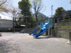 斜面を利用した遊具は、子どもたちに大人気。付近はかつての古墳跡ともいわれています。