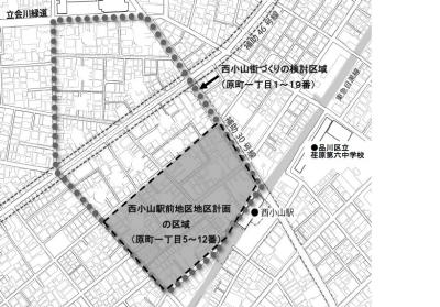 なお、西小山駅周辺地区地区計画の範囲外となる原町一丁目1番から4番、13番から19番については、原町一丁目・洗足一丁目地区地区計画が別途策定されています。