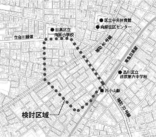 西小山街づくりの検討区域のうちの、補助46号線沿道周辺を含む、原町一丁目・洗足一丁目地区では、補助46号線沿道まちづくりを行っています。 - 木造住宅密集地域の整備