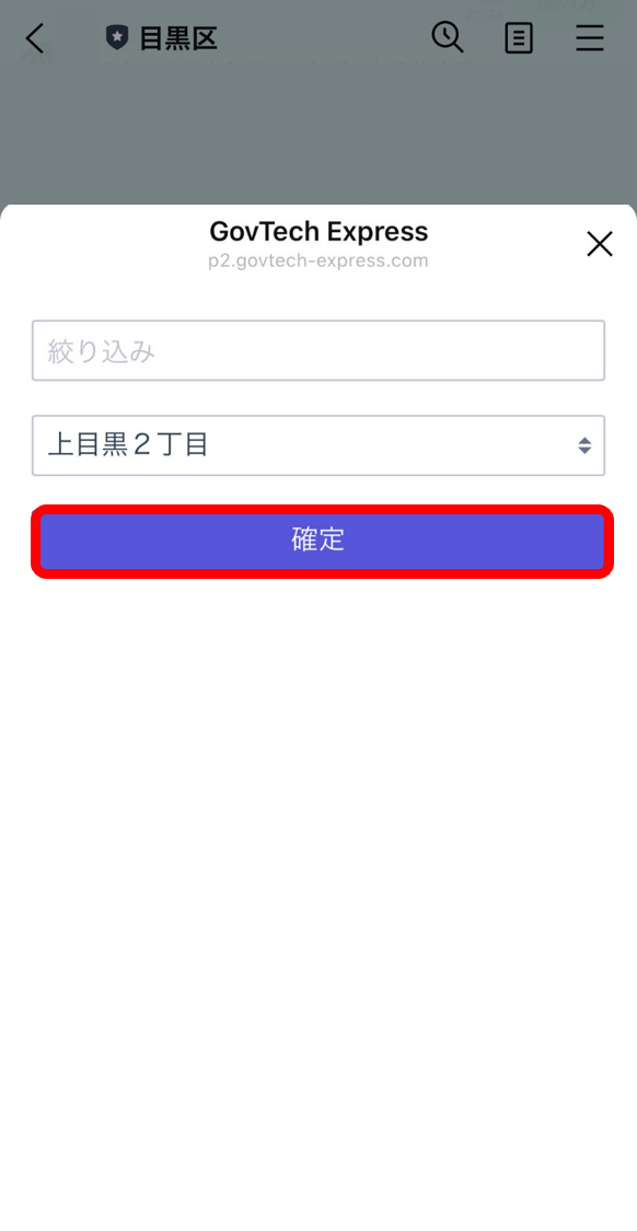 (7)住んでいる地域を選択したら、「確定」を押します。