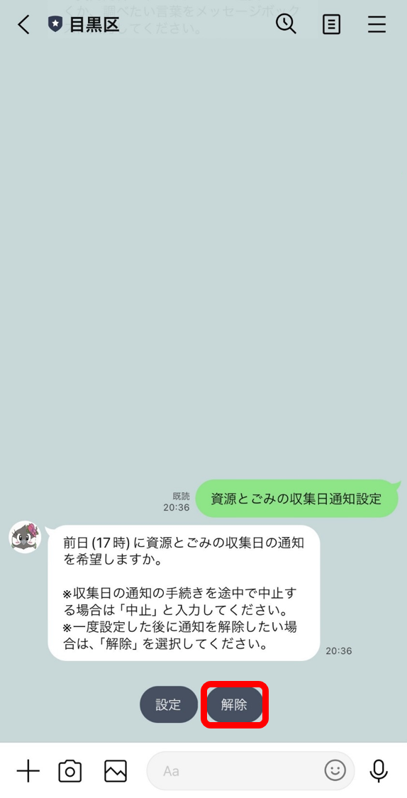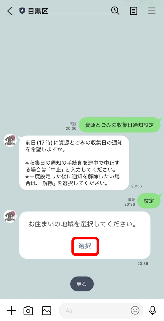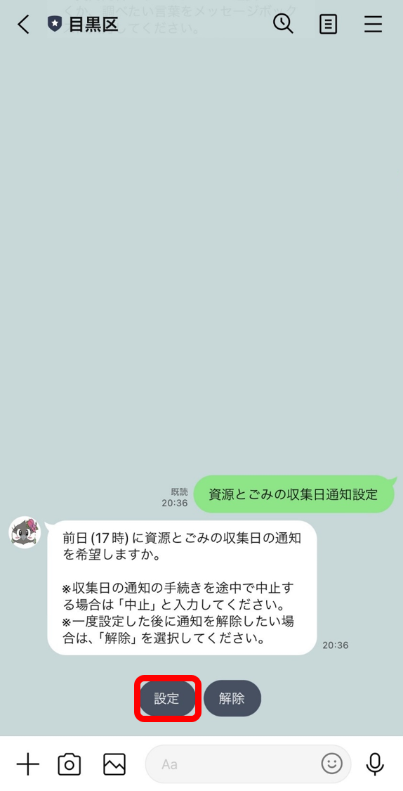目黒区LINE公式アカウントに、住んでいる地域などを登録すると資源とごみの収集日を前日にお知らせします。