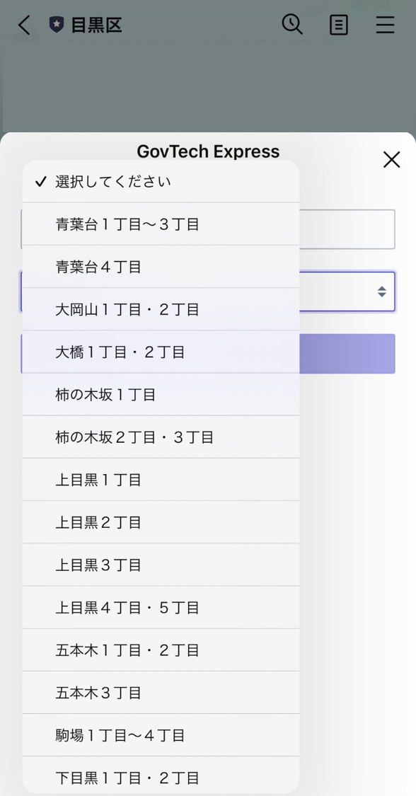 (4)「お住まいの地域を選択してください。」というメッセージに表示されている「選択」を押します。